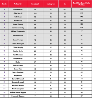 To mark Cybersecurity Awareness Month this October, Virgin Media has analysed 50 of Ireland’s best-known celebrities to uncover which stars attract the most fake social media profiles.